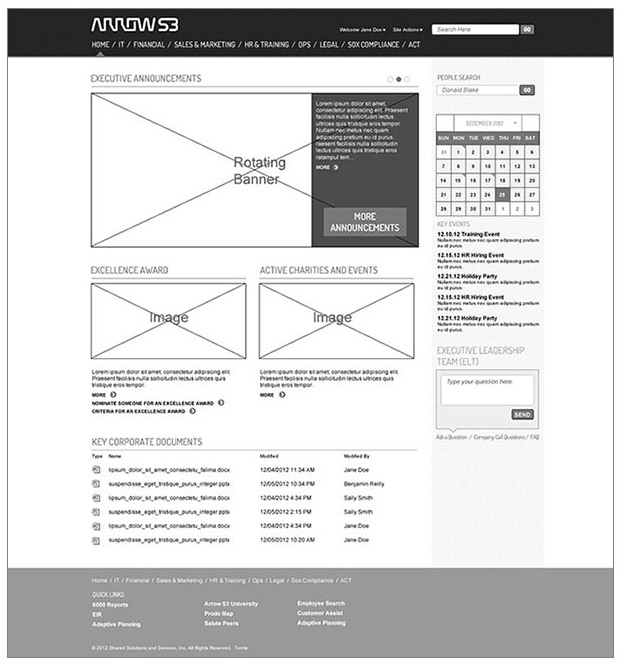 ArrowS3 is a subsidiary of Arrow Electronics, Inc. They focus on unified communications, voice and data technology. I worked with a project manager and offshore development team to help unify their intranet and employee online resources. When we finished the project we had taken their internal portals from twelve or so down to two. Employees were empowered to find the resources they needed to do their job.