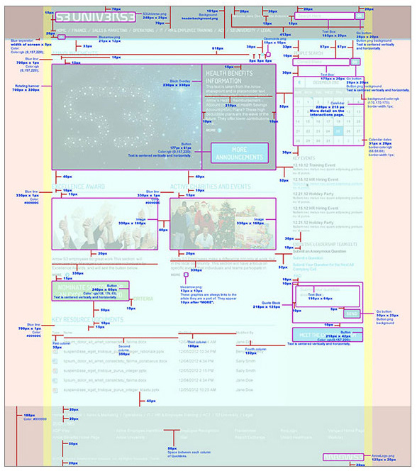 After creating the information architecture for the site I worked with stakeholders to define the general page layout and "rules" for the various sections of the site with all-up stakeholders.