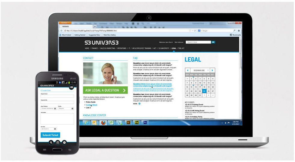 Legal needed their section of the site build around an FAQ and providing ways for other employees to ask questions, as well as a "Knowledge Center" for their own employees to reference.